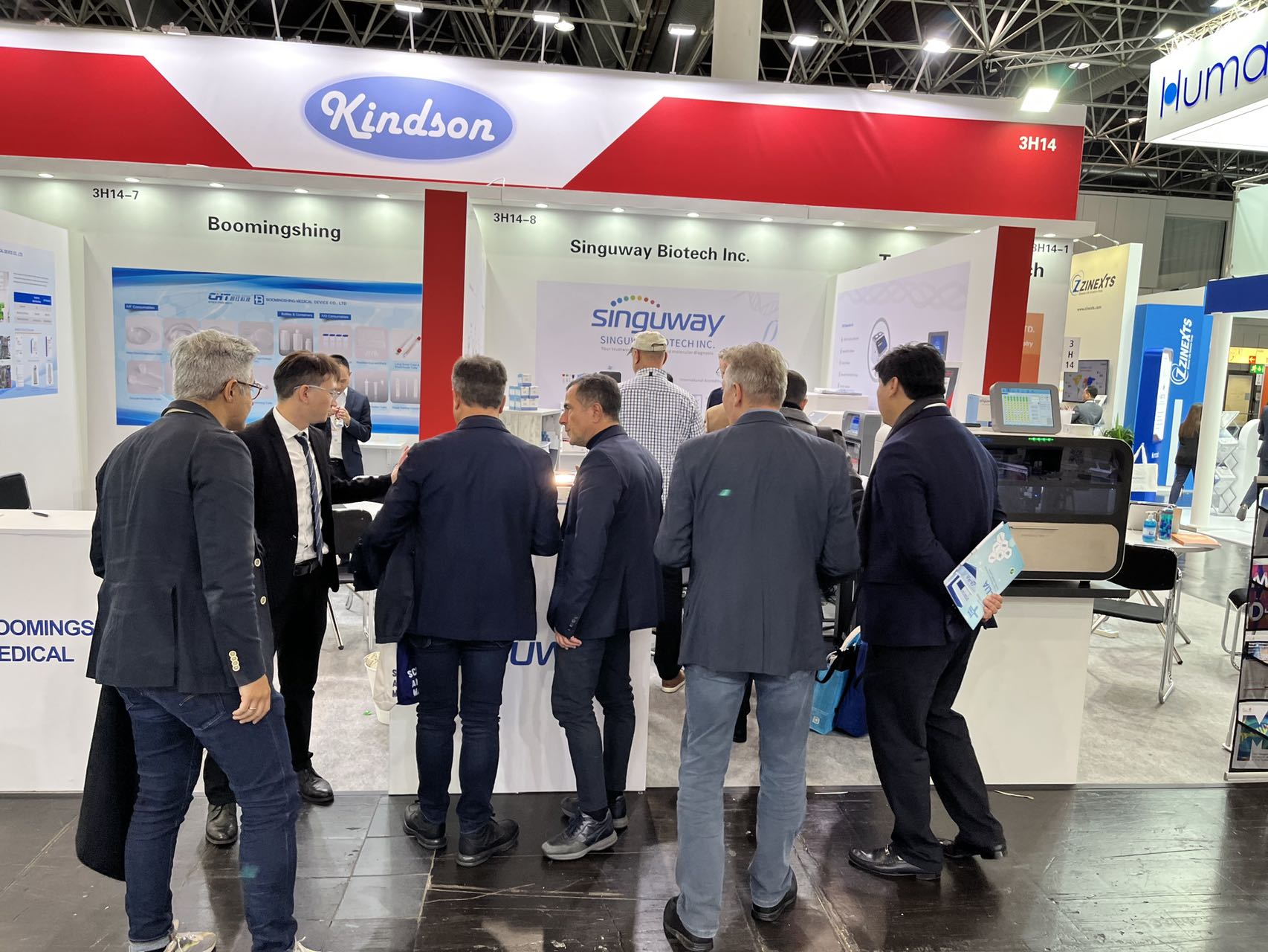On November 14, 2022,Singuway’s overseas marketing team with a number of molecular diagnostic productsof its brandmade a wonderful appearance at MEDICA and completed the first day of the exhibition with great enthusiasm. At the exhibition,Singuway’s self-developed real-time fluorescence quantitative PCRsystem AccuRa-32that atthe world's advanced level hasreceived the attention of many international buyers and professional visitors, and experts from various countries in the molecular diagnostics industry were all praisingSinguway’s product performance, quality, and continuous R&D and innovation capabilities. With high level products, professional service capability and full of enthusiasm,Singuway received nearly 100 customers from Germany, Italy, Brazil, Mexico, Eurasia and other regions.